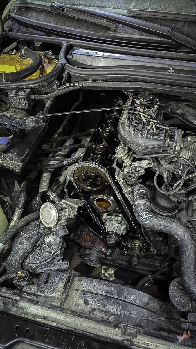 Далее машина на три месяца встала на сервисе. Поиск запчастей для старой модели растягивался на дни. Только оригинальный пластиковый успокоитель цепи ГРМ обошелся в 4 тысячи рублей. Помимо цепи, собрали салон и починили поворотники, но на смену одним проблемам пришли другие: течи масла и антифриза. Несмотря на это, мы с другом успели съездить на E46 в двухсоткилометровую поездку к заброшенному объекту, и машина подарила несколько часов настоящего удовольствия от вождения. Этот дизельный двигатель, несмотря на все хлопоты, действительно демонстрировал характер и выносливость, о которых часто пишут в специализированных обзорах на дизельные силовые агрегаты.
