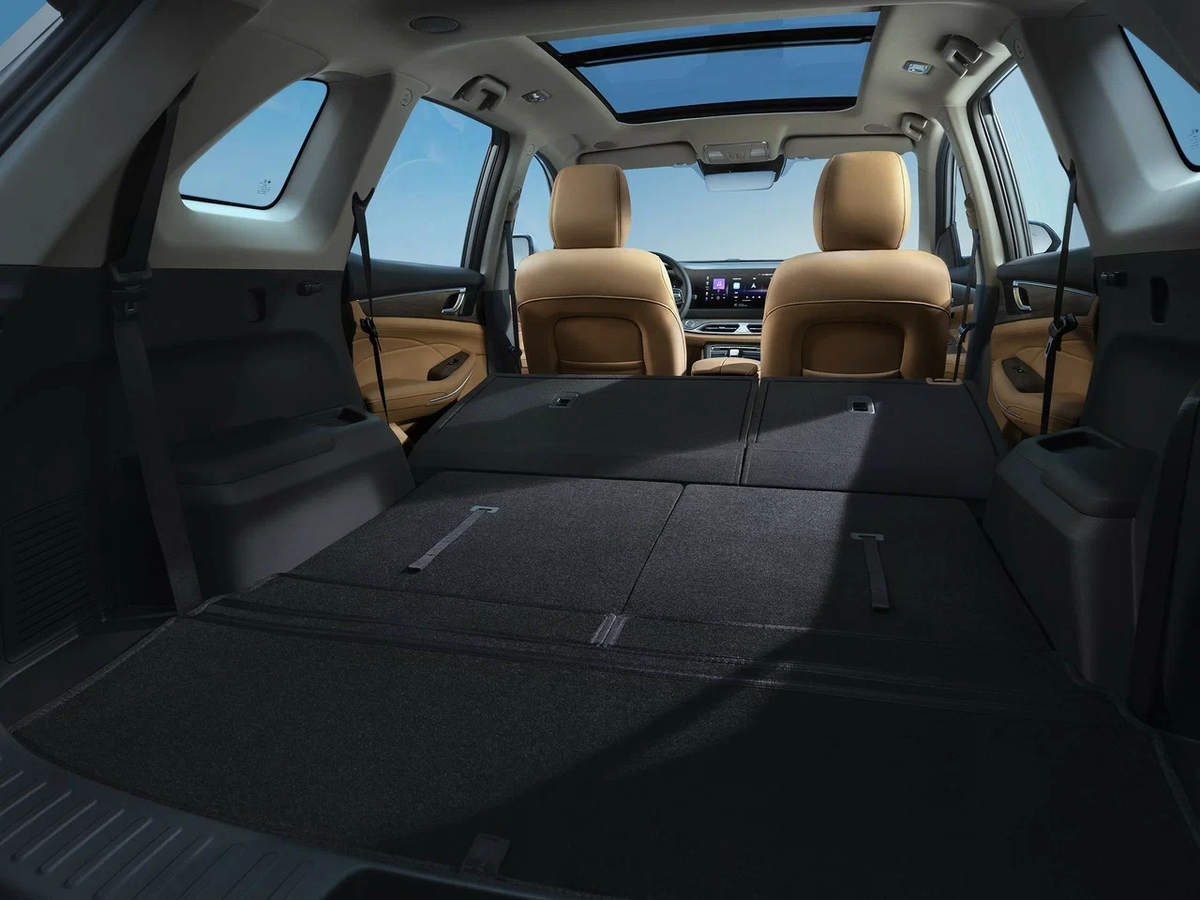 Оснащение тоже не подкачало: 12 динамиков, панорамная крыша, система кругового обзора и прочее. Да, чуть не забыл: он еще и семиместный. Сами понимаете, какой багажник можно получить, сложив третий ряд кресел. Просто мечта путешественника.