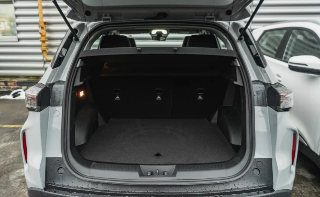 Второй ряд сидений Haval M6 предлагает исключительно просторное пассажирское пространство, что часто отмечается как ключевое преимущество модели. Здесь установлены центральные воздуховоды, разъёмы для зарядки и регулируемые подголовники. Багажник огромен: его объём в стандартном состоянии составляет 808 литров, а при сложенных спинках второго ряда достигает 1700 литров. Для сравнения, у Tenet T4 этот показатель равен 1100 литрам. Штатная полка в багажнике отсутствует, но её можно приобрести отдельно.