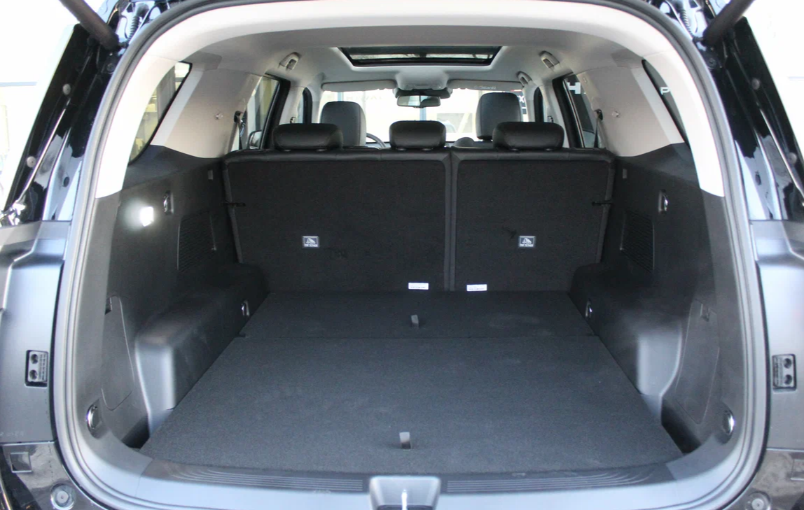Багажное отделение огромно: его объём составляет 1240 литров, а при сложенном втором ряде увеличивается до 2216 литров. Полноразмерное запасное колесо размещено под днищем.