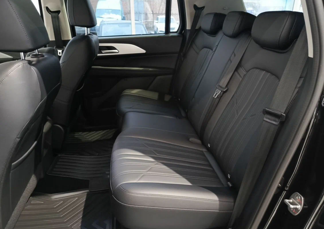 На втором ряду невероятно просторно — буквально «вагон» свободного пространства. Пассажирам доступны три подголовника, центральные дефлекторы вентиляции, разъём для зарядки, подогрев сидений и потолочная подсветка. Подлокотник с подстаканниками отсутствует, однако спинка заднего дивана регулируется по углу наклона механически.