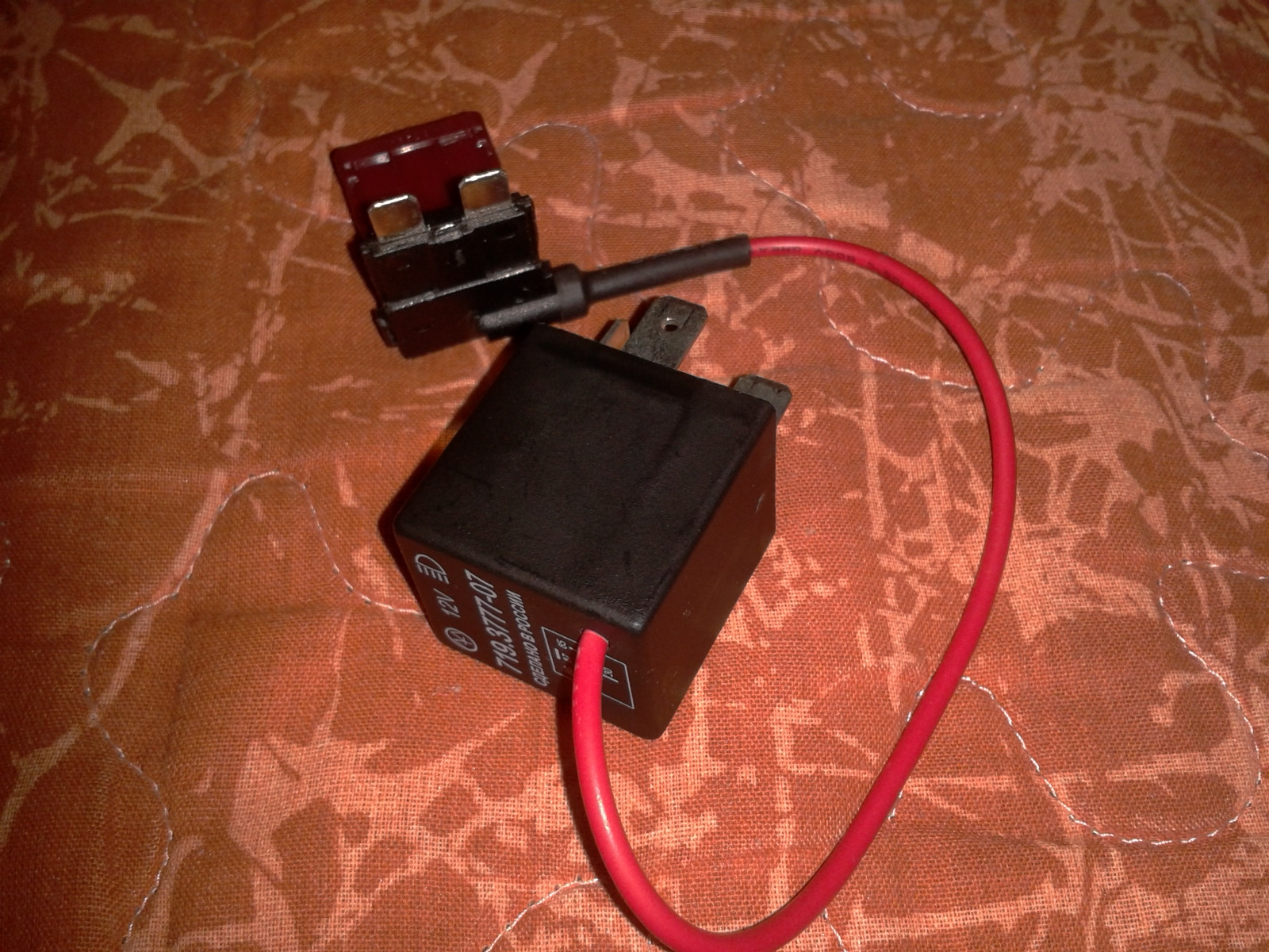 На фотографии видно, что реле уже соединено с разветвителем, хотя изначально я покупал эти компоненты отдельно. Для надёжности все соединения были выполнены с помощью пайки.