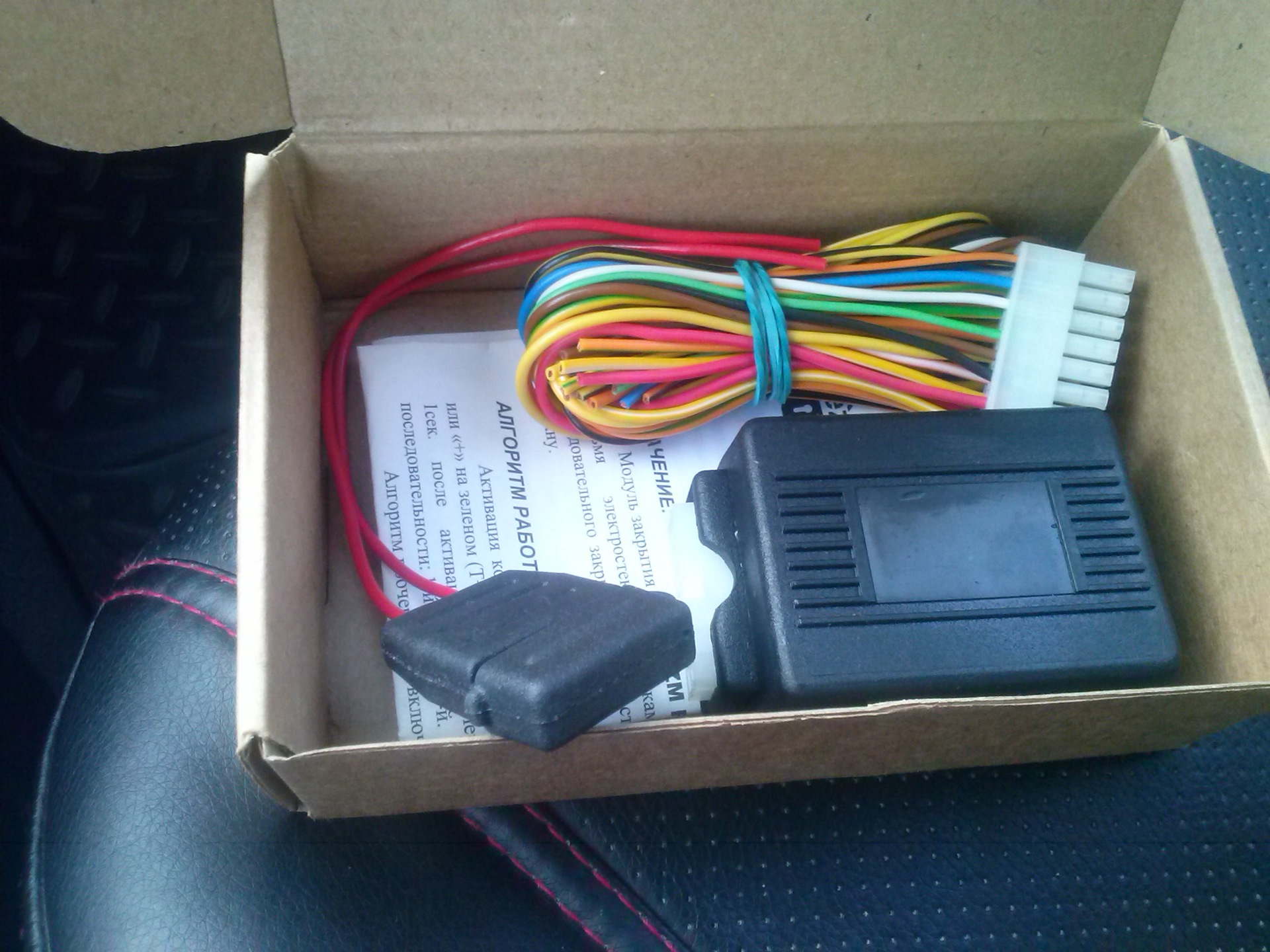 - Основная задача устройства — не оставлять автомобиль на улице с открытыми окнами, что в наше время довольно неразумно. В комплекте, который я заказал, были: сам блок доводчика на четыре окна, провода для подключения, двусторонний скотч и краткая инструкция. Белый провод предназначен для подключения к постоянному плюсу 12В, но с одной важной оговоркой — его нужно подключить так, чтобы доводчик не срабатывал, когда мы пользуемся автомобилем в обычном режиме (например, при закрытии дверей с помощью кнопки внутри салона). Два красных и черные провода — это питание самого блока. По ним устройство получает сигнал на активацию, который может быть как положительным, так и отрицательным. Также есть четыре силовые линии для управления моторами стеклоподъемников.